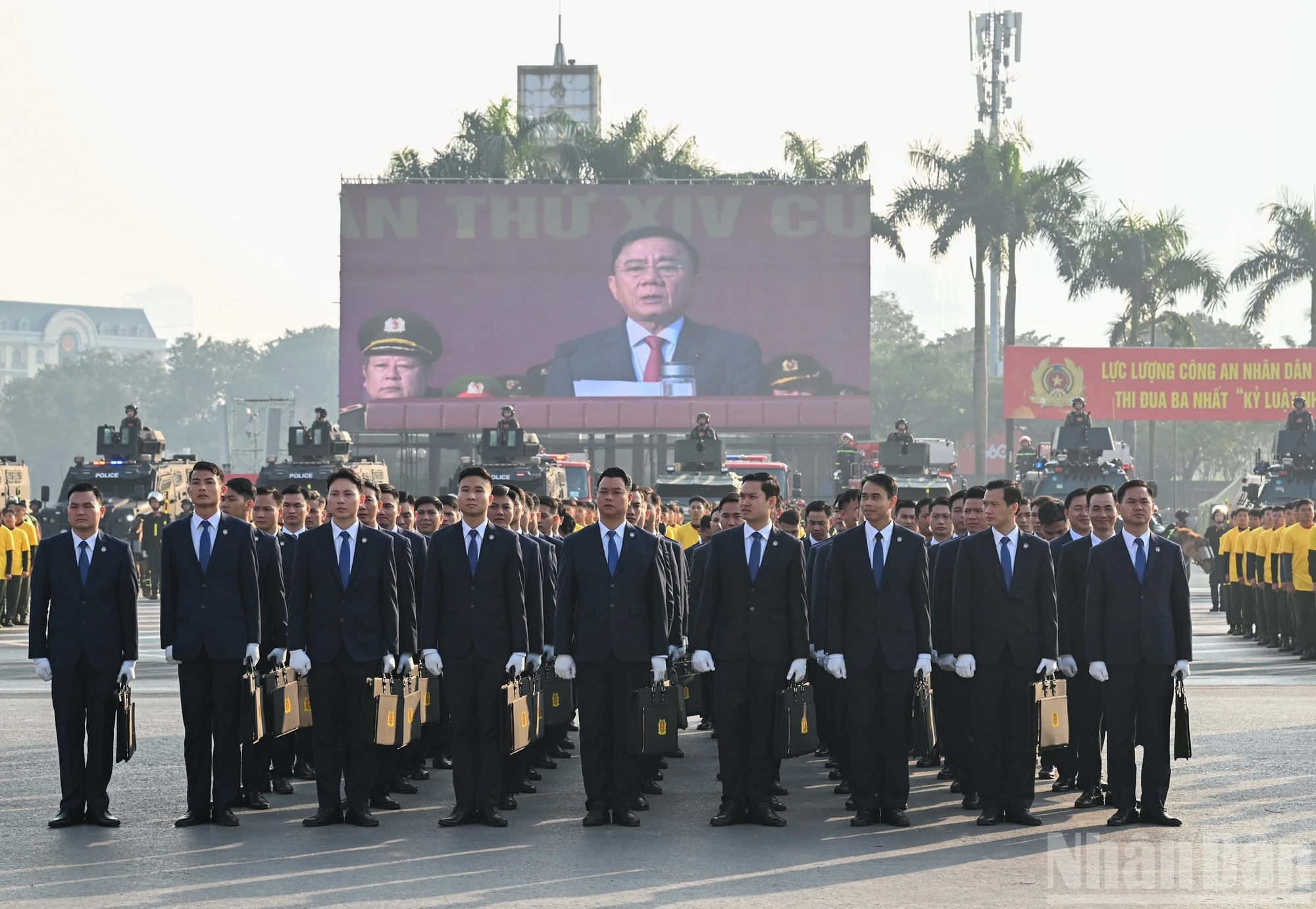 Các lực lượng tham gia bảo vệ Đại hội XIV của Đảng đã duyệt đội ngũ, diễu hành phương tiện, thiết bị kỹ thuật và các nội dung khác theo kế hoạch đề ra. (Ảnh: DUY LINH)