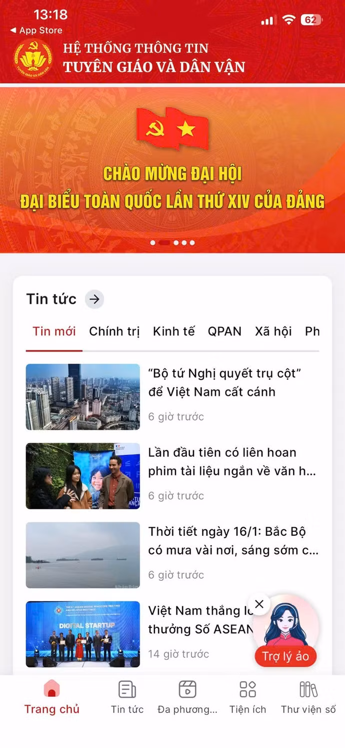 Trợ lý ảo AI: AI được kiểm soát bằng nguồn thông tin chính thống, bảo đảm tính chính xác, định hướng đúng và phục vụ hiệu quả công tác tuyên truyền, điều hành. Trợ lý pháp luật, trợ lý chính sách hỗ trợ hỏi-đáp chính sách, trả lời nhanh các thắc mắc về đời sống và chính sách bằng ngôn ngữ bình dân, dễ hiểu, hỗ trợ phân tích dữ liệu và dư luận xã hội. Từ hành vi người dùng, ứng dụng giúp phát hiện xu hướng, dấu hiệu bất thường, giúp cảnh báo sớm, nâng cao hiệu quả chỉ đạo, điều hành.