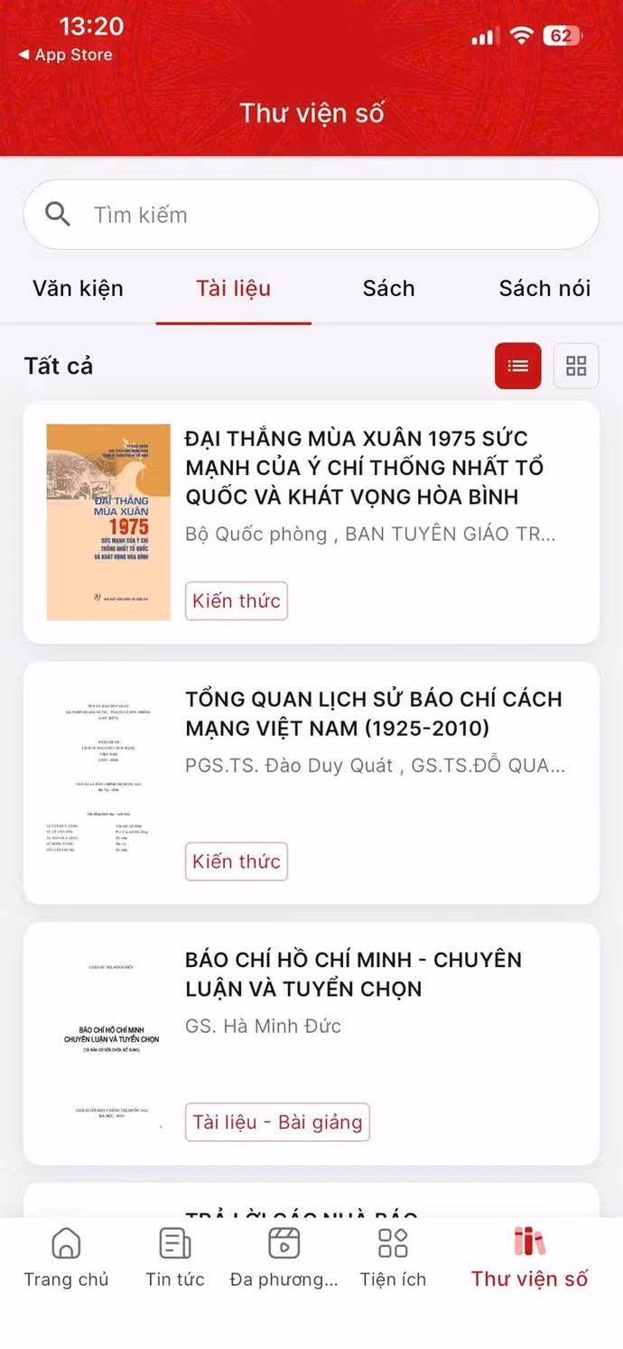 Thư viện số: Cung cấp không gian lưu trữ và tra cứu, tập trung các nguồn tri thức chính thống bao gồm: văn kiện của Đảng và ngành tuyên giáo; hệ thống văn bản pháp luật từ Hiến pháp, luật, nghị quyết đến nghị định, quyết định, công văn; kho sách và sách nói phong phú với hàng nghìn đầu sách đa lĩnh vực đáp ứng nhu cầu học tập, nghiên cứu và cập nhật thông tin của cán bộ và người dân.